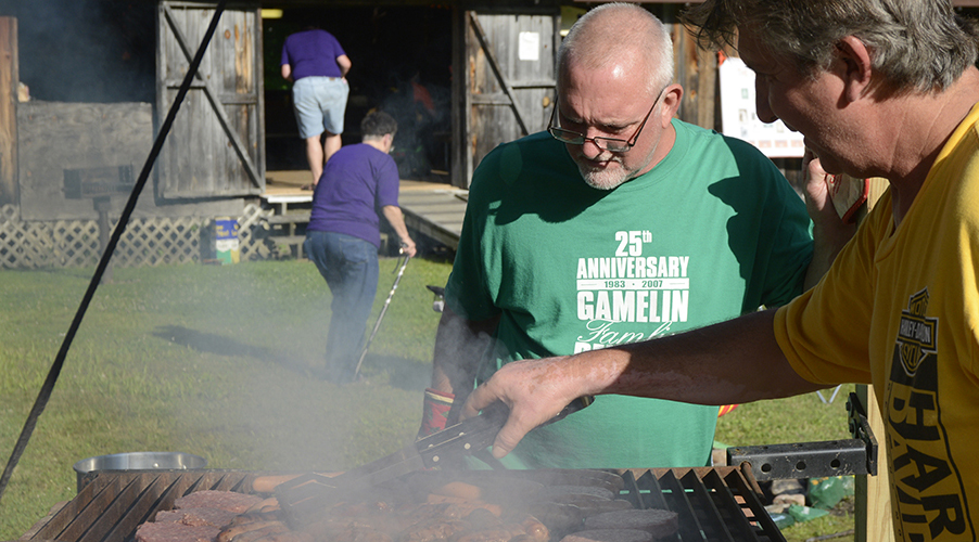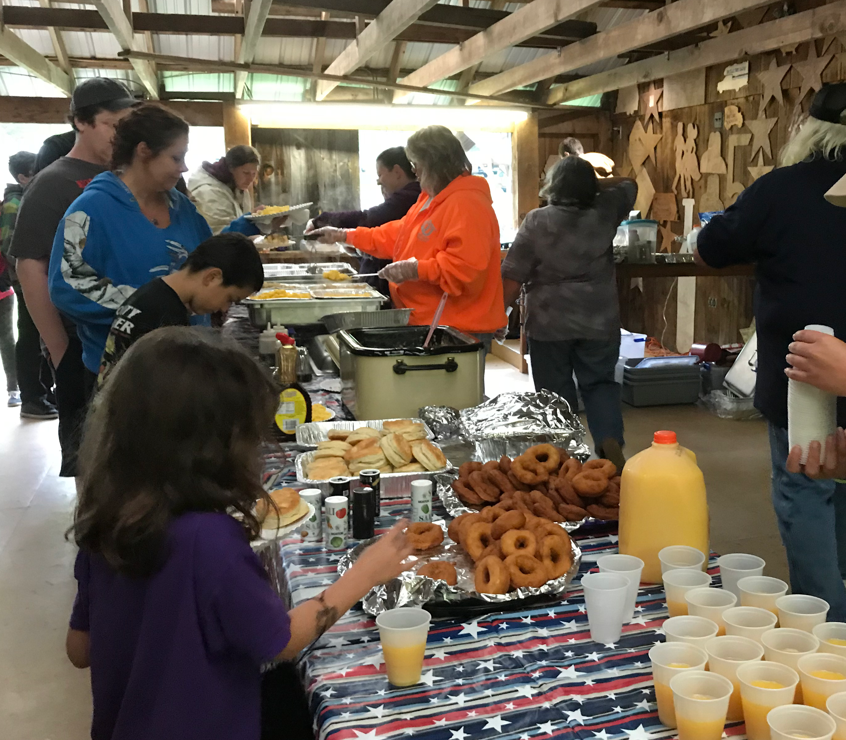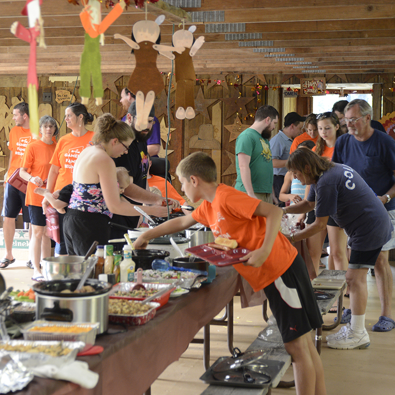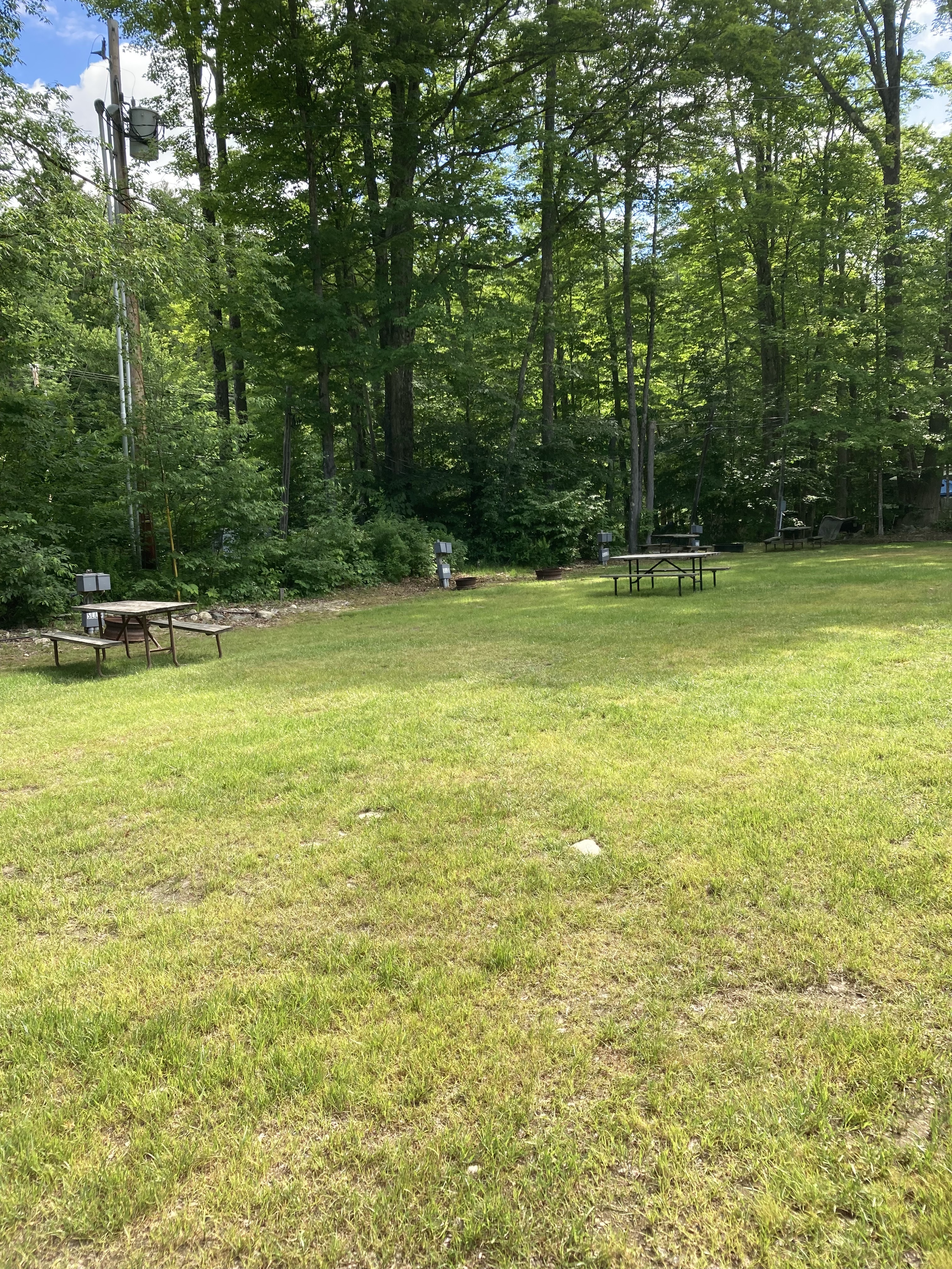 Our Large group camping area with BBQ and pavilion makes our campgroud ideal for large group events. There is room for more than 30 travel trailers in the safari Field area with additional space for overflow nearby. Family reunions, conventions, shows, camping groups, hiking groups, biking groups, dancing groups are all welcome here. For the members of your group who do not have their own RV we will be happy to rent them one of ours. For groups reserving 10 or more sites there is a 10% discount for everyone in the group including camper rentals. Additionally groups of 10 or more enjoy the usse of the dance hall/pavilion, the large charcoal BBQ pit and large group fire pit at no extra charge.